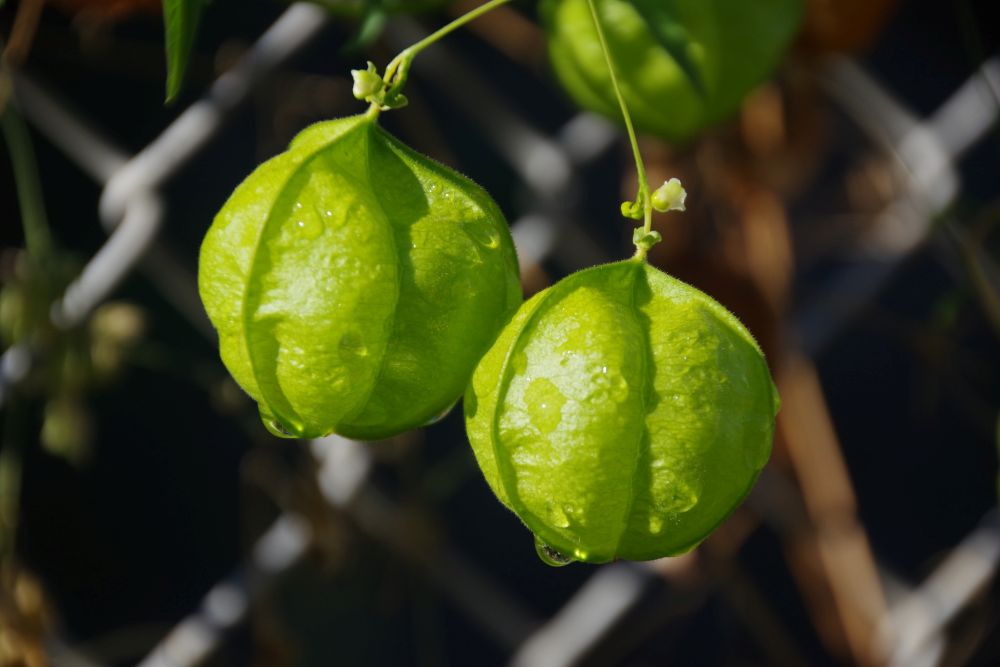 一方では、急速に進む季節の変化に後れを取るように、紅葉するはずのフウセンカズラがまだ青々としていて、周囲の赤や黄色を引き立たせています。