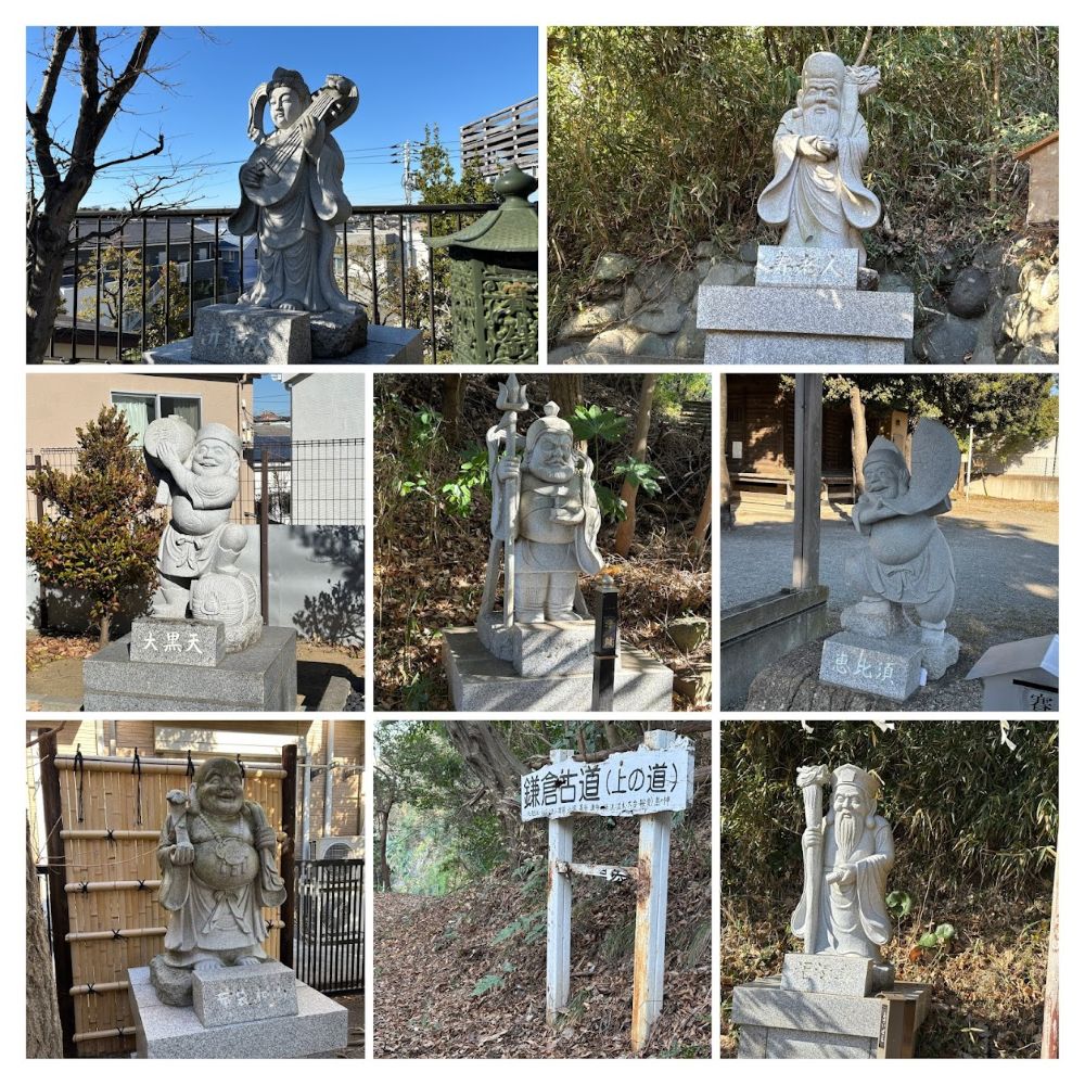 『藤沢市の東部に位置する村岡地区の歴史をたどると、古事記に縁があると云われています。由緒あるこの地域に平成8年の暮れ、村岡郷土史研究会がお寺や神社に七福神を祭って「和と幸せをもたらすように」との地域の人たちの願いを込めて、七福神が設置されました。』
