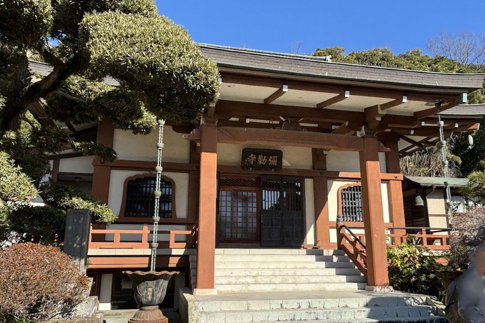 このあたりの地名の由来ともなった古い寺で、嘉禄2年(1226)に北条泰時が、父義時の菩提を弔うために創建したと伝えられます。はじめは法泉寺と称し禅宗であったといわれます。元弘の変の時に兵火にあい全山焼失し、旧本尊弥勒菩薩は裏山の岩窟に泰安(現在は本堂に安置)され、後に日蓮宗に改修しました。