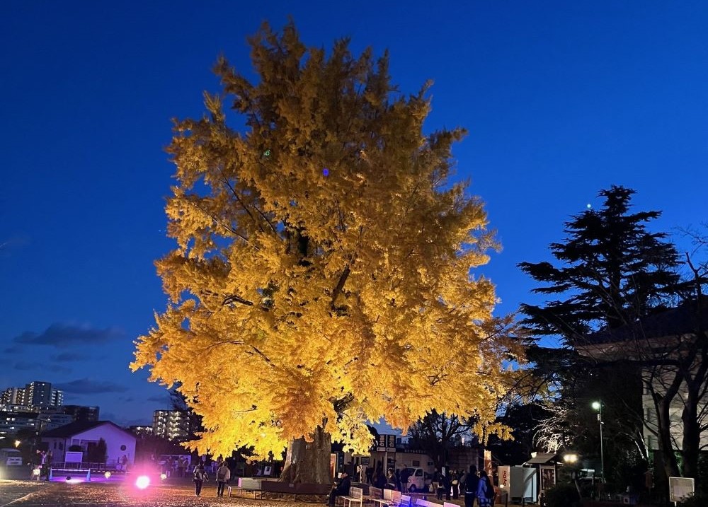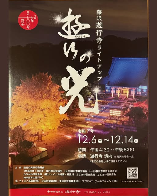 「荘厳(しょうごん)」とは美しく厳かに飾ることの意味で大イチョウ、本堂、放生池、いろは坂など遊行寺が誇る景観を、それぞれの放つ光や年月を経た風合い、池の水面に映る樹木、重なりあう木の葉がみせる陰影など個々が放つ光を厳かに照らします。(遊行寺ホームページより)